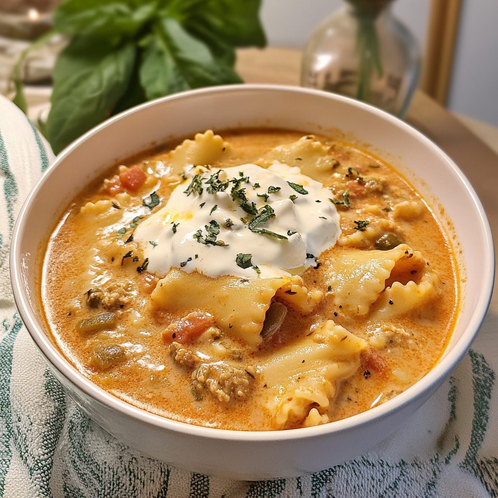 Creamy Lasagna Soup is the perfect blend of hearty flavors and comforting textures. This one-pot meal combines tender noodles, rich broth, and savory spices, making it ideal for chilly evenings or casual gatherings. With its creamy finish and cheesy topping, this soup stands out as a crowd-pleaser that’s both simple to prepare and satisfying.